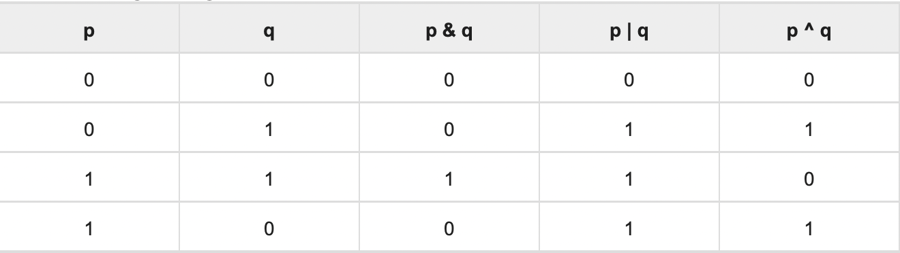 Bitsel operatör bitlerde çalışır ve bit bit işlem gerçekleştirir. &, | Ve ^ için doğruluk tabloları aşağıdaki gibidir -![]()