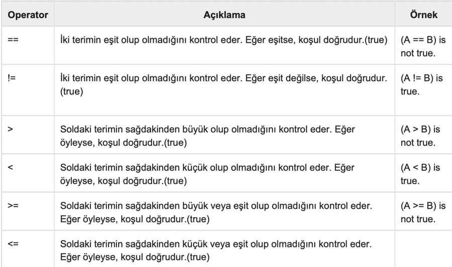 Karşılaştırma Operatörleri