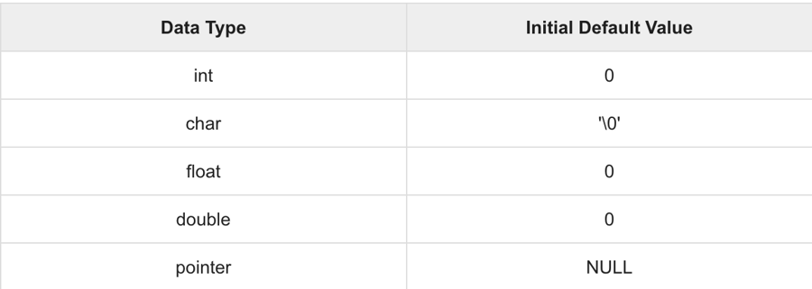 Yerel bir değişken tanımlandığında, sistem tarafından başlatılmaz, kendiniz başlatmalısınız. Global değişkenler, aşağıdaki gibi tanımladığınızda, sistem tarafından otomatik olarak başlatılır -![]()